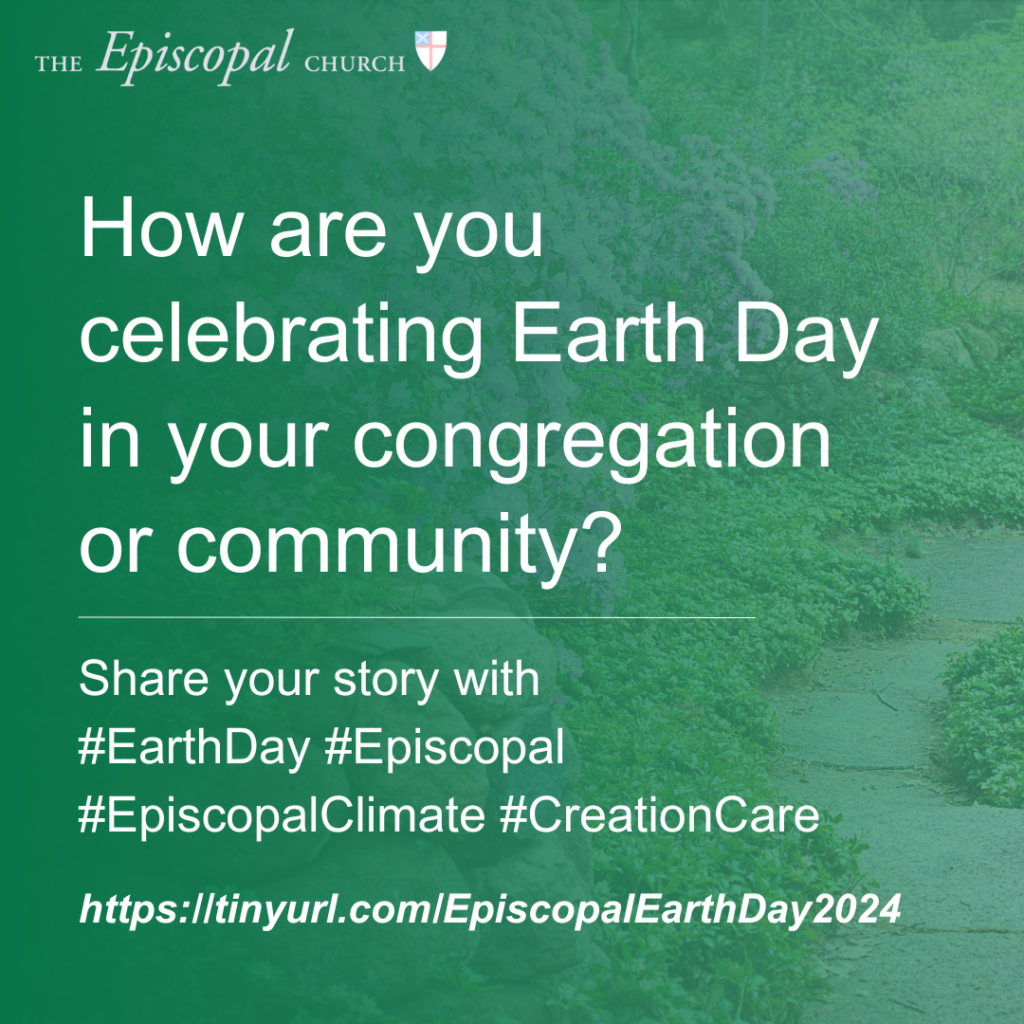 Episcopal Earth Day 2024: Share your story! What places and people do you want to protect from climate change and pollution? How will you celebrate God’s creation and take action this Earth Day? Share your prayers, photos, or action story on social media with #EpiscopalEarthDay #EarthDay2024 #CreationCare #EpiscopalClimate.