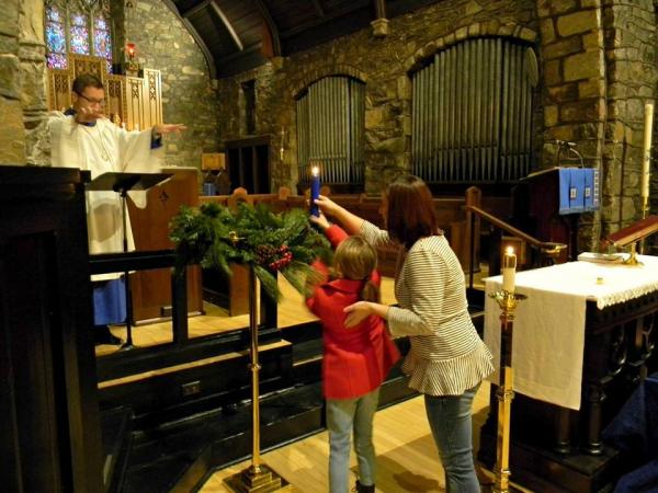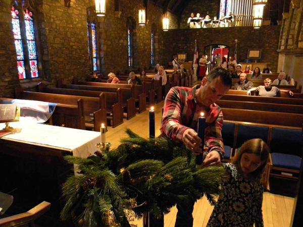 Lighting the candle on the Advent Wreath at the start of service, 2nd Sunday of Advent, Grace Episcopal Church, Brunswick MD Photo Credit: Art Reid