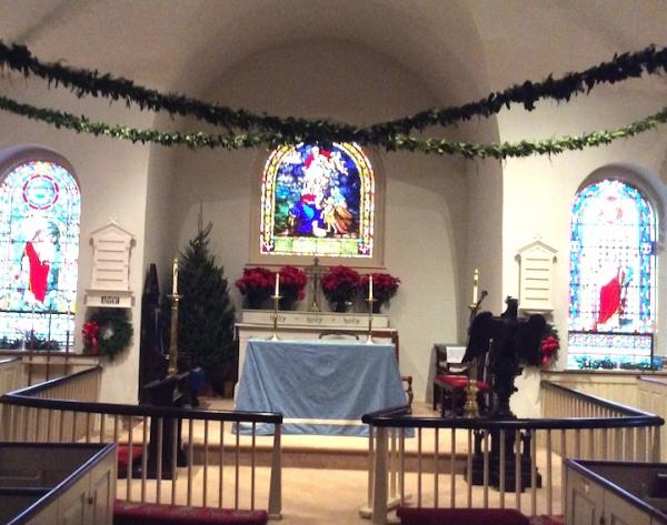 Greening of the Church at St. James Church, Monkton, MD. Still, Advent so frontal hasn’t been changed yet to gold. Photo Credit: Susan Robinson