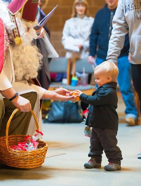 One of our little ones gets an orange from St. Nicholas on the second Sunday of Advent, 2014. Taken at St. Columba Episcopal Church, Kent, WA Photo credit: Daniel Hershman