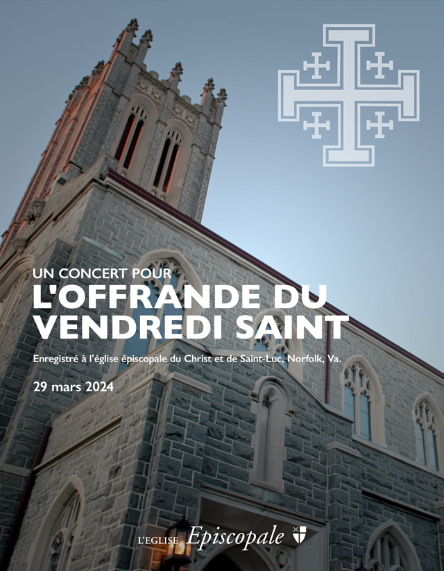 Regardez le tout premier concert de musique sacrée de l’Offrande du Vendredi Saint, créé à l’église épiscopale Christ and St. Luke’s, à Norfolk, dans le diocèse épiscopal de Virginie du Sud, et diffusé en continu sur episcopalchurch.org et nos canaux de médias sociaux le Vendredi Saint, 29 mars. Au cours du concert, nos invités parleront du travail d’amour, de libération et de sauvetage soutenu par l’offrande du Vendredi saint.